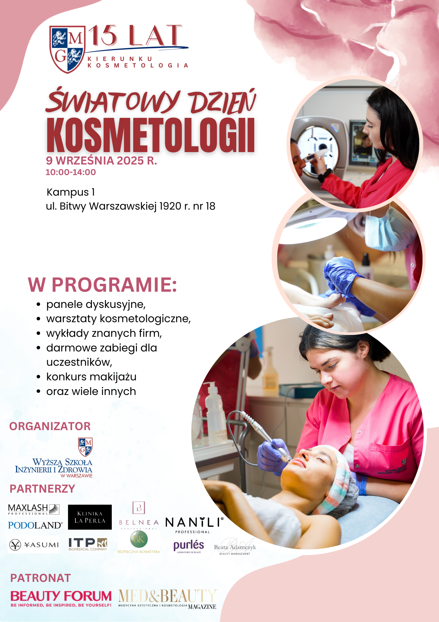 Światowy Dzień Kosmetologii to wydarzenie otwarte dla wszystkich: studentów, absolwentów, kandydatów na studia, partnerów biznesowych oraz wszystkich osób zawodowo lub hobbystycznie związanych z kosmetologią i pielęgnacją.