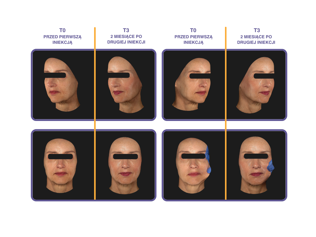 Rezultat: przywrócenie objętości, redukcja głębszych zmarszczek oraz ujędrnienie linii żuchwy i okolic policzków.