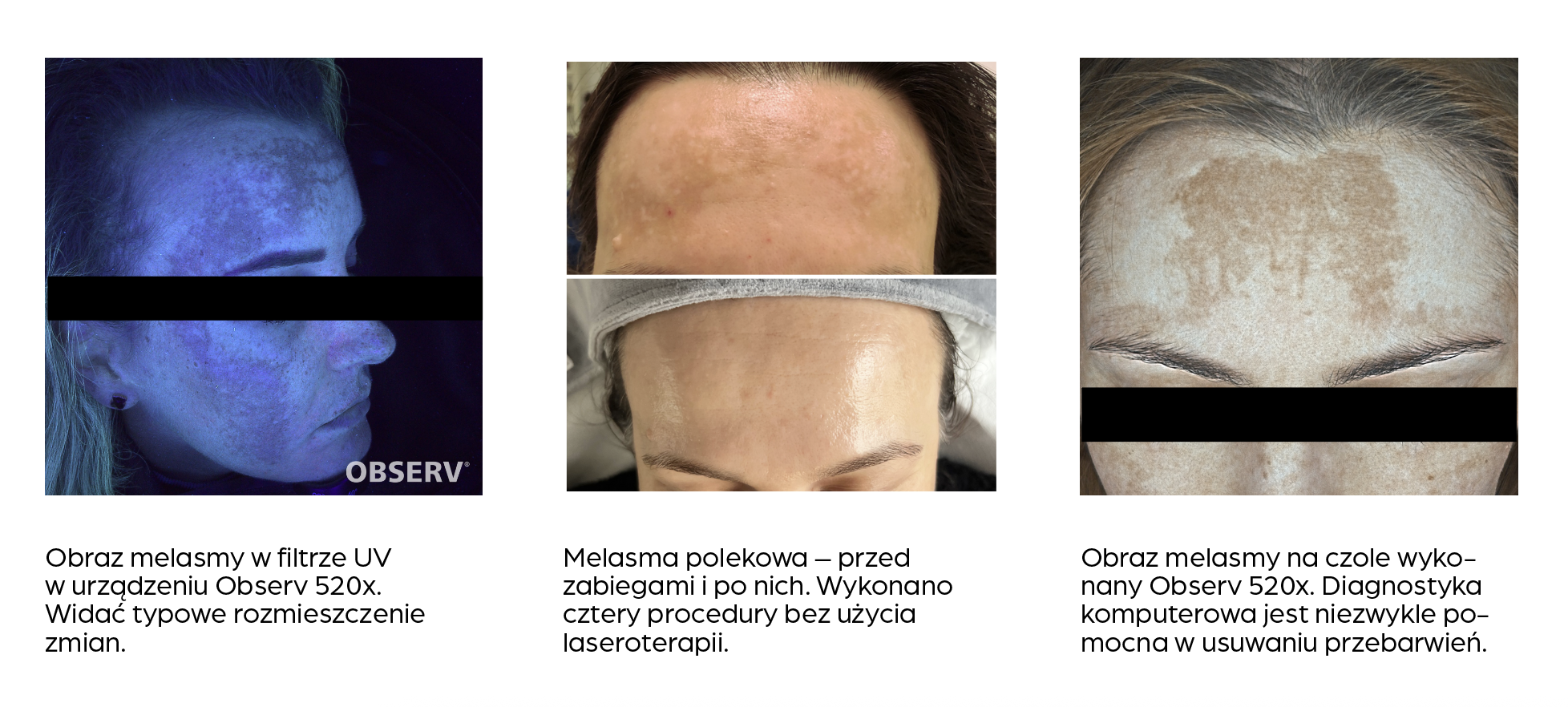 Terapia melasmy wymaga dużego doświadczenia, pokory zabiegowca, dobrego sprzętu i dobrych produktów. Do tego ważne są zaangażowanie i cierpliwość klienta. Trzeba jednak zdawać sobie też sprawę, że melasma ma charakter nawrotowy i bardzo łatwo zaprzepaścić poczynione postępy. Te proponuję zawsze mierzyć za pomocą zdjęć wykonywanych na różnych etapach terapii. Bardzo często dopiero na fotografiach widać, jakie rezultaty przyniosły terapia i pielęgnacja domowa. Klienci, widząc postęp, są usatysfakcjonowani z zabiegów i pozytywnie odnoszą się do naszej pracy.